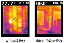 相較于同類型產品,TG165擁有更高像素的紅外分辨率,高達4800像素,更廣視場角,24:1的距離系數比,更廣的測溫范圍極大地擴展了應用范圍,8GB內存方便用戶保存大量圖像資料,發射率設定值可調節可預設,TG165的良好性能保持了美國菲力爾公司(FLIR Systems)的一貫品質,可應用于解決電氣故障檢修、墻體內發熱管道、機械過熱以及制冷問題。作為一款非接觸式測量工具,TG165專用于測量因溫度過高或過低而無法觸摸、難于接近或因太危險而無法靠近的物體表面。