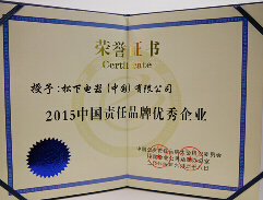 2015年6月28日,由民政部中國社會工作聯合會企業公民委員會、中央電視臺財經頻道和騰訊公益慈善基金會共同主辦的“2015中國企業責任品牌大會”在北京瑞安賓館隆重舉行。本次大會是中國企業責任品牌的首次盛會,政府、協會相關領導、專家、企業家、媒體記者200余人出席了大會。松下電器(中國)有限公司以在企業公民社會責任及責任品牌領域的突出表現,榮獲“2015中國責任品牌優秀企業”殊榮。