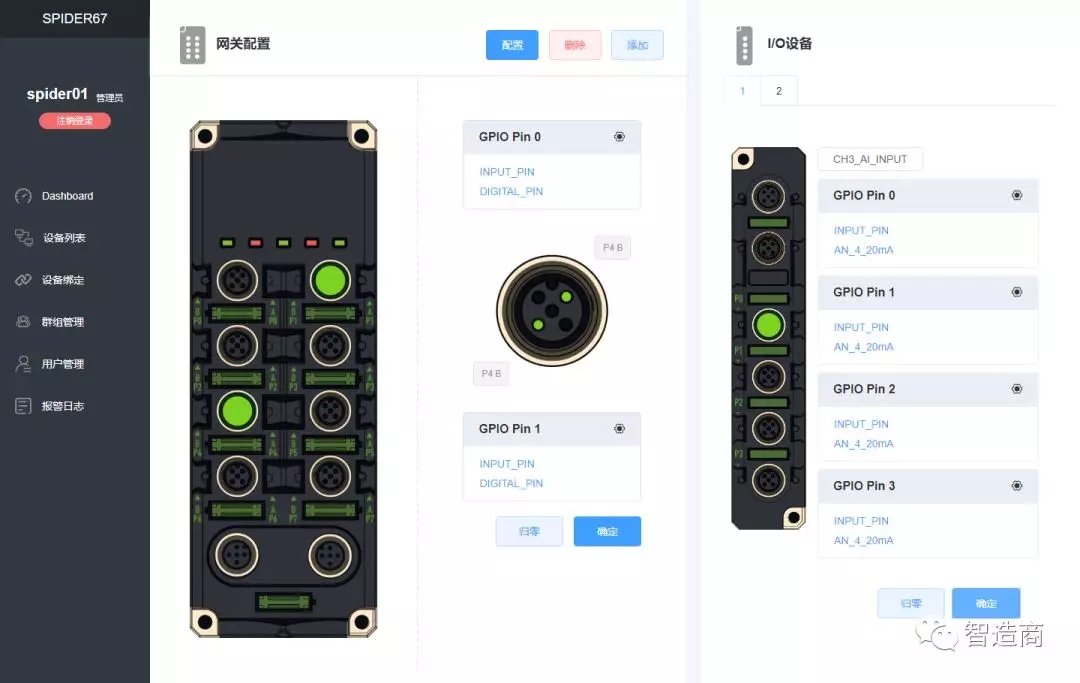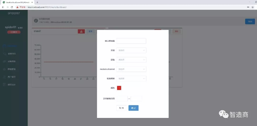完成上述 I/O 模塊的組態配置以后,用戶再登陸應用終端平臺,就可以使用數據趨勢圖表和閾值報警...等功能對現場設備實施遠程監控和管理了。 可以看到,用戶在使用 Spider67 Mobile 系統服務搭建物聯網系統時,基本不需要對現有設備進行任何調整,也并不要求具備十分專業的 IT 技術能力,加上前面所說的獨立于傳統的自動化控制系統和不受現場復雜的元件線路和位置分布限制的特點,它其實為很多傳統應用領域的信息化轉型升級提供了另一種比較現實有效的方法。 而如果用戶具備一定的 IT 系統集成能力,也完全可以基于自身定制化需求開發一套定制化的應用操作平臺,并將 Spider67 Mobile 現場級 I/O 整合到其中。據了解,針對這種情況下,官方會為用戶提供相應的 I/O 模組配置工具,用于幫助實現 Spider67 Mobile 網關與用戶自定義平臺的協議對接。顯然,這就是另外一種非標的服務模式了。