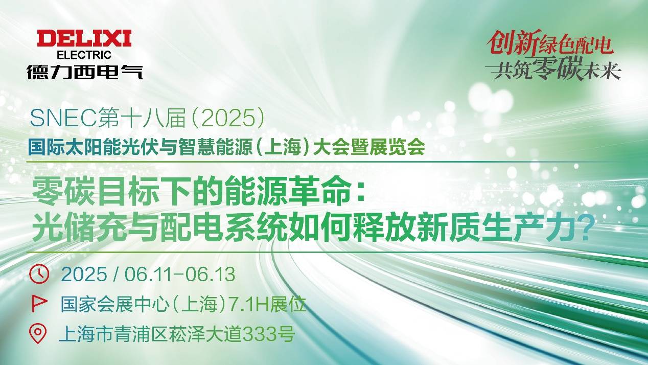當碳中和成為全球共識,當新能源革命重塑產業格局,一場關乎人類命運的技術盛宴正在東方啟幕。2025年6月11日-13日,第18屆SNEC國際太陽能光伏與智慧能源展(上海)將匯聚全球4000+頂尖企業、來自95個國家和地區的行業精英,以“光儲充一體化”為核心命題,共繪零碳未來的技術圖譜。在這場全球能源變革的“達沃斯論壇”上,德力西電氣將以“創新者、領航者、變革者”之姿,攜戰略級新品、全場景解決方案與生態品牌思維強勢登陸7.1H館|C160展位,詮釋中國制造的綠色轉型密碼。