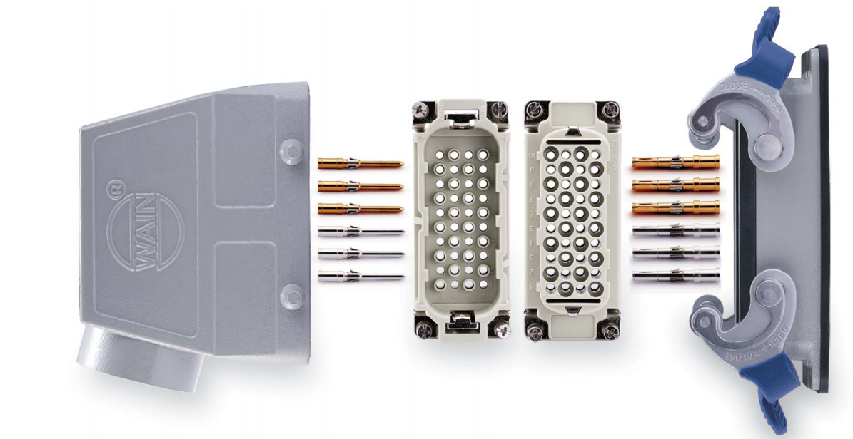 WAIN重載連接器主要用于不同設備或功能單元之間的電氣或信號連接,其豐富的連接組合為復雜控制設備的安裝和維護提供了極大的便利。HD,HDD系列產品主要技術特性(工作電流:10A 工作電壓:250V或230/400V,工作溫度范圍:-40℃~+125℃,回路數(shù):