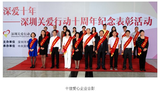 活動(dòng)回顧:4月28日下午,“深愛(ài)十年”深圳關(guān)愛(ài)行動(dòng)十周年紀(jì)念表彰活動(dòng)在深圳廣電大廈拉開(kāi)帷幕。百萬(wàn)市民矚目的年度“十佳愛(ài)心人物”、“十佳愛(ài)心企業(yè)”等名單一一揭曉。中央、省文明辦的相關(guān)領(lǐng)導(dǎo),深圳市委書記王榮等市有關(guān)領(lǐng)導(dǎo)出席,相關(guān)成員單位以及社會(huì)各界愛(ài)心人士代表近1000人參加活動(dòng)。以“關(guān)愛(ài)•感恩•回報(bào)”為主題的深圳關(guān)愛(ài)行動(dòng)迄今已連續(xù)舉辦十屆,現(xiàn)已經(jīng)成為深圳精神文明建設(shè)的重要品牌。