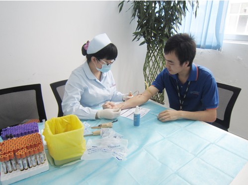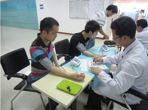 2013年4月20日周六,合作醫療機構的醫生攜帶檢查設備,上門到公司總部為員工進行各項體檢項目,體檢內容有內外科、血常規、心電圖、B超等十多項檢查項目,體檢員工自覺有序的排隊參加各項檢查,并不時提出相關健康問題,醫生給予相應的解答和建議,醫院很貼心地為我們準備了早餐,在檢查完畢后可自行到餐廳就餐,為我們空腹來體檢的同事們提供了良好的后勤保障。