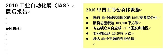 2010工業自動化展(IAS 2010)于2010年11月9日-13日在上海新國際博覽中心隆重舉行,本屆“工業自動化展”展覽總面積達30,000平方米,共吸引了519家參展商,分別來自德國、美國、瑞士、意大利、日本、韓國、丹麥、加拿大以及中國臺灣、中國香港等16個國家和地區,其中德國、日本以及臺灣地區都以政府組團的形式參加,其中境外參展面積達57.1%。