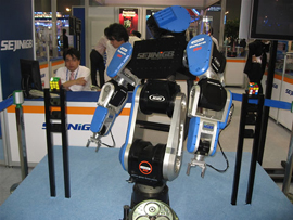 考察團(tuán)一行觀摩了韓國(guó)機(jī)床展。由于韓國(guó)KOMAF與EASTPO2007首度合作全面告捷,KOMAF對(duì)東博國(guó)際機(jī)床展及中國(guó)機(jī)床市場(chǎng)發(fā)展?fàn)顩r深表信心。KOMAF與 EASTPO2008進(jìn)行了更為深入的合作,合作簽約儀式將于11月在上海舉行。將于2008年7月9日-12日在上海新國(guó)際博覽中心舉行的EASTPO2008,韓國(guó)組團(tuán)還將帶來(lái)新型機(jī)器人,機(jī)器人將在展會(huì)現(xiàn)場(chǎng)進(jìn)行“模仿秀”、“人機(jī)互動(dòng)比賽”等新穎模式表演,這些機(jī)器人將向工業(yè)市場(chǎng)如汽車、手機(jī)、 FPD等提供系統(tǒng)的高附加值客戶服務(wù)。