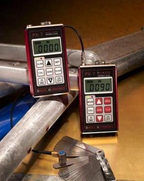 PX-7超聲波測厚儀的性能: 美國DAKOTA ULTRASONICS公司生產的PX-7精密超聲波測厚儀系采用現代數字技術,能快速精確的得數讀數.具有報警模式\差值模式.并可與計算機或數據獲取系統連接。 測量范圍:0.15-25.40mm 顯示精度:0.001mm PX-7系列超聲波測厚儀的回波-回波模式,具有穿過漆層或涂層測量的功能。 達高特公司最新推出的PX-7系列精密測厚儀已經面世了。這一性能優良的測厚儀家族是為最惡劣的工業環境 和高精度的測量要求而設計的,并能很好的滿足各方面應用。用戶根據我們提供的PX-7超聲波測厚儀和PX7-DL超聲波測厚儀的各種性能指標,從中可以選出一款適合的機型來滿足您在應用方面的各種測量要求。 PX-7超聲波測厚儀的測量范圍: 范圍:0.15-25.4mm(可在英制,公制間切換) 分辨率:0.001mm 聲速范圍:1250-10,000m/s 測量模式回波、回波一回波(穿過漆層)和自動轉換。單點測量每秒4個讀數,或在掃描模式中每秒8個一用于獲取最小厚度。單點校準 PX-7超聲波測厚儀的特點: 差值模式:輸入合格的厚度值,儀器會顯示出與輸入值的±差值。 報譬模式: 輸入一個最小合格厚度值。如果測量值在高/低限之外,紅色報警燈會亮,且有聲響報警。如果測量值在高/低限之內,綠燈發亮,表示測量值在正常范圍內。 質量認證出廠時均按英國國家標準校驗。 PX-7DL超聲波測厚儀的物理參數: 重量:285克 尺寸:63.5寬x114.3高x31.5厚mm 工作溫度:-30℃-50℃ 機殼:擠壓鋁機殼,帶鍍鎳鋁蓋帽,具有密封墊片。 鍵盤:9個觸摸鍵具有密封覆膜。能防水耐油。 電源2節1.5V堿性電池或1.2V AA鎳鉻電池標稱工作時間:150小時,堿性電池;100小時,鎳鉻電池。電池電量不足時,顯示閃爍;當電池電量過低不能正常工作時自動關機。 顯示多功能4.5位數字LCD顯示,0.5英寸高,背光可選開/關/自動(僅用時才亮)。用英寸、英寸/微秒、毫米和米/秒顯示測量值。條形田指示讀數穩定。 內部數據庫(僅Px-7DL)自動數據記錄系統,1000個讀數。容量(10個文件,每個100個讀數)OBST指示無讀數。配備有數據獲取軟件和電纜。 探頭單晶延遲探頭。頻率范圍:10—22MHZ快鎖式LEMO型接頭。1.2米探頭電纜。(可提供用戶特需探頭)