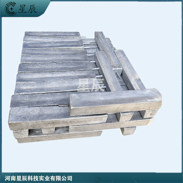 高電位鎂陽極應用 鎂是電化學陰極保護工程中常用的一種犧牲陽極材料,具有較高的化學活性,它的電極電位較負,驅動電壓高此外,同外加電流陰極保護系統一樣子,陽極與管道之間不應有金屬構筑物。犧牲陽極埋設深度以陽極頂部距離地面不少于1m為宜。在地下水位低于3m的干燥地帶,陽極應埋設得相對深~些。在河流中,犧牲陽極應當埋在河床中相對safe的高度,防止河水的沖刷造成陽極的破壞,影響使用。 棒狀鎂鋅復合犧牲陽極產品介紹: 鎂鋅復合陽極為棒狀,規格為 Ø108mm×950mm,單支重量為 41kg,其中鎂合金陽極層厚度為12mm、鋅合金陽極層厚度為36mm。星辰鎂鋅復合陽極連接電纜為 VV-0.6/1kV 1×10mm2,長度可定制。填包料配方(質量百分比):石膏粉:膨潤土:工業硫酸鈉=75:20:5 產品說明: 預包裝鎂合金陽極:是我公司為適應工程建設高節奏、高效率的施工要求,在以往單支犧牲陽極的基礎上,輔以套裝配件組裝而成。使顧客施工更方便,滿足顧客需求。套裝鎂合金陽極,由犧牲陽極1支,一根VV1*10mm2電纜若干米,填包料若干公斤,棉布口袋1條,塑料編織袋1條組成。裸陽極和電纜連接,連接部位用環氧樹脂密封,然后加填充料封裝在棉布袋里。組裝鎂陽極的質量指標為:電纜連接電阻低,電纜連接強度高。河南星辰科技實業有限公司 (陽極填充料可以改shan陽極周圍的環境,確保穩定良好的電流效率;降低陽極接地電阻,增加陽極輸出電流;陽極腐蝕產物溶解均勻,降低陽極極化率;吸收周圍土壤水分,保持陽極四周較久濕潤;提高電流效率,延長陽極使用壽命。)用于埋地管線、儲罐外壁及其他地下金屬結構 常用犧牲陽極型號規格: 型號 | 規格(mm) 長×(上底+下底)×高 | 重量(kg) | MG-22 | 700×(130+150)×125 | 22.0 | MG-14 | 700×(120+100)×102 | 14.0 | MG-11 | 700×(110+90)×88 | 11.0 | MG-8 | 700×(95+75)×75 | 8.0 | MG-4 | 350×(95+75)×75 | 4.0 | MG-2 | 350×(55+60)×55 | 2.0 |