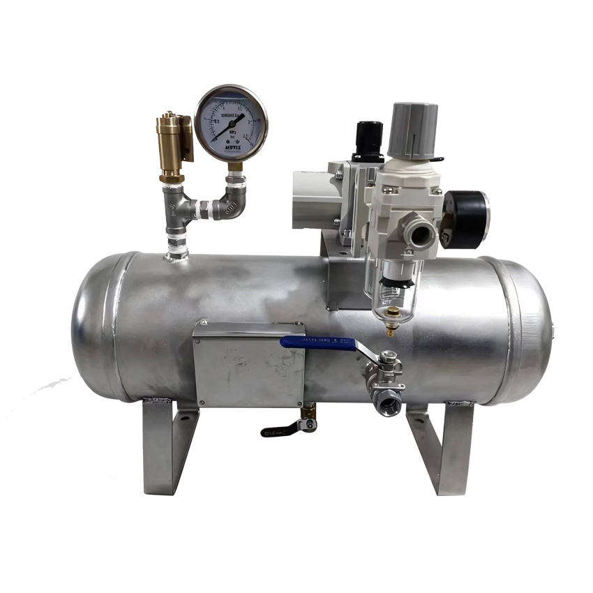 空氣增壓泵系統: ●設備為免潤滑設計,滿足防爆要求,無油壓縮技術.氣體不受污染。 ●不需配用電設備,沒有電火花產生。 ●輸出壓力可以調節。 ●驅動空氣流量可以調節,這樣可以調節增壓目的動作頻率,控制增壓氣體輸出流量并延長空氣增壓泵的使用壽命,自然冷卻,無需冷卻器。 ●具有體積小,重量輕,操作維護簡單,維修方便等優點 空氣增壓泵優點: ●直接增加壓力 ●達到壓力后不再消耗能量 ●能夠用于危險的工作環境中 ●空氣增壓泵適用于需要使原空壓系統提高壓力的工作環境中,能夠提高車間供氣系統的壓力放大比例為2:1/4: 1/4: 1/10: 1僅需將工作系統內的壓縮空氣作為氣源即可。 應用領域: ●主要用于工廠壓縮空氣的二級增壓,可以方便解決工廠壓縮空氣氣源壓力不足的問題,空氣壓力可由4-6kg增壓至10-31kg ●散熱器、冷卻管、閥門等產品的氣密性試臉,其他多種軍工用途 1 高壓氣瓶或反應釜的高壓氣體充裝,瓶裝剩余氣體增壓利用,不同氣瓶之間的倒裝充灌。 2 科研試驗工業生產中的特珠氣體充裝,生活醫療潛水等呼吸氣瓶氧氣充裝。 3 石油化工天然氣增壓,氟里昂回收及加壓,塑膠發泡氣輔設備應用,超臨界萃取,及油氣井注氣設備的應用。 4 安全氣囊灌充,熱等級靜壓機,飛機輪胎和液壓蓄能器充氮,儀器儀器校驗等其它似為氣瓶充裝原理的各種氣密封性試驗應用 5 造紙、注塑等一系列應用 型號 | 增壓比 | 輸出流量 (L/min) | 輸出壓力 (BAR) | 尺寸(mm) | 重量(kg) | XY-SYA-1900 | 2:1 | 1900 | 16 | 600x430x410 | 30 | XY-SYA-1200 | 2:1 | 1200 | 16 | 600x430x410 | 35 | XY-SYA-900 | 2:1 | 900 | 16 | 600x430x350 | 30 | XY-SYA-600 | 2:1 | 600 | 16 | 600x430x260 | 25 | XY-SYA-400 | 2:1 | 400 | 16 | 600x430x260 | 19 | XY-SYA-60 | 4:1 | 60 | 32 | 600x430x260 | 19 | XY-SYA-350 | 5:1 | 350 | 40 | 600x430x420 | 40 | XY-SYA-160 | 10:1 | 160 | 80 | 600x430x410 | 40 |