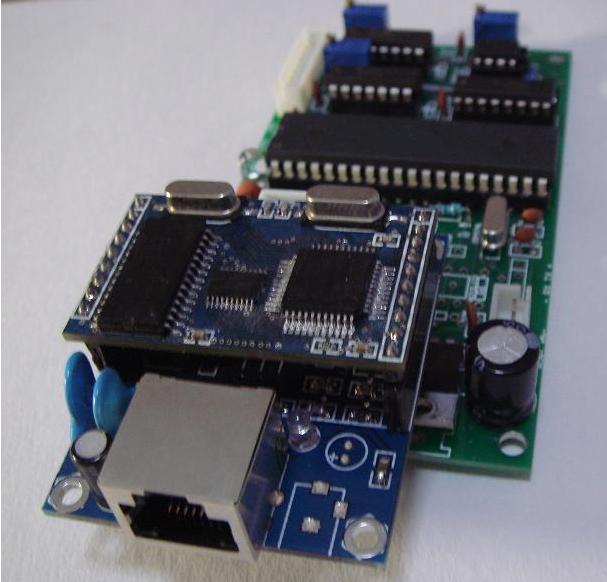 該局域網絡(以太網)控制AD模數轉換/模擬量數據采集模塊采用TCP/IP協議與控制主機(PC機)進行通訊,運行穩定可靠。傳輸距離遠(通過交換機級連可以達300米,甚至可以通過互聯網超遠程控制),每塊AD轉換/數據采集板分配一個唯一的IP地址,通過IP地址進行數據的傳輸區分;可以控制的AD轉換/數據采集板的數量大(IP地址范圍:192.168.1. 1~192.168.1.254,共可以驅動最多254個AD轉換/數據采集板)。本控制板具有6路10位(精度±1LSB)高速A/D轉換通道,可同時對外部輸入的6路模擬量(直流0-5V)進行模數轉換,轉換后的結果(每通道轉換后的結果為2字節數據)通過局域網(以太網)向服務器主機(PC機)快速輸出。可用于現場溫度,濕度,液位等模擬量的采集,與本公司其他網絡控制板配合可用于工業現場控制等(可代開發設計整套工控系統)。本板每秒鐘可對所有6路外部模擬量進行大約10次連續轉換輸出(也可定做其他輸出速度或輸出方式)。輸出的數據幀固定由14個字節組成,幀格式具體格式如下: