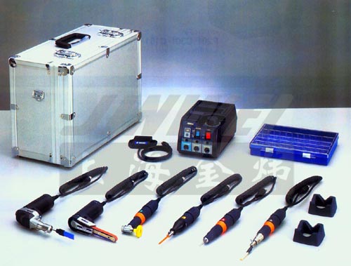 超音波精密電動(dòng)研磨機(jī)套裝工具,由多功能調(diào)頻電源箱、超音波手持機(jī)、高速旋轉(zhuǎn)機(jī)、前后往復(fù)機(jī)、左右擺動(dòng)機(jī)、旋轉(zhuǎn)式砂帶機(jī)、角向平面研磨機(jī)、腳踏開(kāi)關(guān)、配件盒、手提工具箱組成。具有使用方便,一機(jī)多用等功能。從模具放電加工到鏡面研磨拋光可在極短時(shí)間內(nèi)完成。