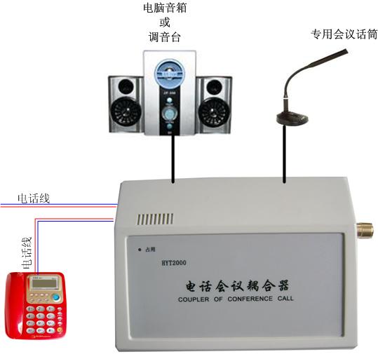 使用時將電話會議耦合器直接接到電話線上,并將有源音箱、功放、調(diào)音臺的等功率放大設(shè)備直接連接到音頻輸出接口上,將話筒接到音頻輸入接口上即可。當(dāng)召開電話會議時,對方電話的聲音就會通過電話會議通輸出到音響設(shè)備上擴音輸出,通過電話會議耦合器上的話筒就可與對方通話。擴音功率根據(jù)外接音響設(shè)備功率而定。一般可以滿足20-100㎡以上的會場開會使用。當(dāng)然,雙方都使用我公司的電話會議耦合器,更可將語音效果發(fā)揮到淋漓盡致。話筒采用專用的會議話筒,音箱采用通用電腦有源音箱。
