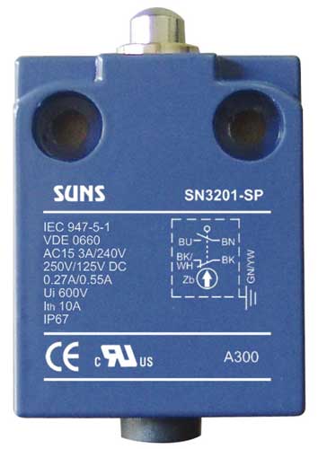 SN3201安全防水限位開關(guān) 通過UL CCC CE CSA認證 SUNS美國三實 上海三實電器有限公司