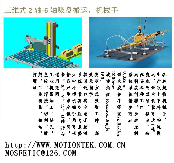 龍門式機(jī)械手/工作平臺三維式機(jī)械手/工作平臺模組滑臺采用NSK滾珠絲杠和直線導(dǎo)軌副傳動,具有精度高,效率高,壽命長,磨損小,節(jié)能降耗,結(jié)構(gòu)緊湊,通用性較強(qiáng).仿震等效果,也可以根據(jù)用戶要求, 設(shè)計(jì)非標(biāo)工作臺如: 龍門式工作平臺五軸聯(lián)動有效行程X.450MM.X.450MM Y.450MMZ.150MM U.360度旋傳R.90度上下擺動使顯了人性化的機(jī)器人,材料跟據(jù)客戶選型如鋁合金,鋼板,大理石. 鋁型道模等;龍門式機(jī)械手/工作平臺數(shù)控工作臺系列產(chǎn)品可以配置步進(jìn)電機(jī)或伺服電機(jī). 龍門式機(jī)械手/工作平臺三維式機(jī)械手/工作平臺模組滑臺可廣泛應(yīng)用于激光焊接機(jī),激光切割機(jī),插線機(jī),打孔機(jī),涂膠機(jī),機(jī)械手,搬運(yùn)或運(yùn)輸生產(chǎn)線上,檢測裝置,射線探傷分析,應(yīng)力分析點(diǎn)膠機(jī)PCB移(絲)印機(jī)鉆銑機(jī)自動送鎖螺絲機(jī)全自動焊錫機(jī)噴涂機(jī)灌膠機(jī)等數(shù)控機(jī)床和實(shí)驗(yàn)設(shè)備工控設(shè)備上.