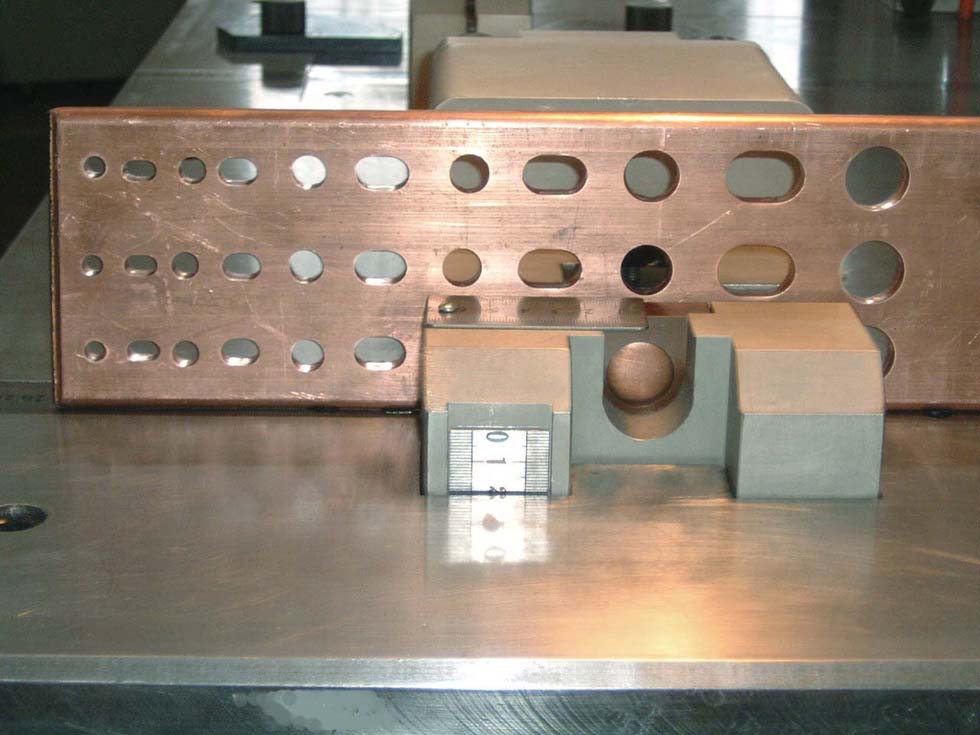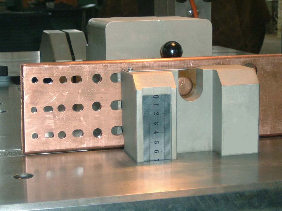 新型三工位母線折彎機,有切斷、沖孔、彎曲、校平、壓花、電纜線端頭壓接、端子導軌切斷等功能。是電氣行業大批量加工母排的高效率設備。 高效率的三工位母線折彎機,設計遵循以人為本的理念,讓工作更方便、更省力,更安全。合金鋼整體工位,一致性好,精度高,堅固耐用。適于年產值上億圓的企業使用。合理的工作面布局,三個獨立的液壓系統,可三人同時操作,互不干擾。模具配置多,沖孔可選位,無需劃線打樣沖,圓孔腰孔隨意沖;折彎可預定角度。  高品質的三工位母線折彎機,設計時重視降低使用者的成本:放置好母線,踩踏開關即工作,松腳后,工位自動復位、停機。所以有節能、機械磨損小、油溫不高、使用壽命長等優點。高質量的液壓元件,易維護的系統,操作工也能進行保養。