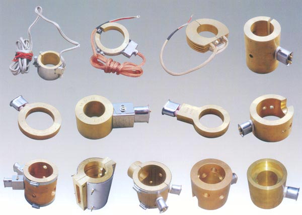 鑄銅電加熱器  是以管狀電熱元件為發熱體,元件彎曲成型,進入模具澆鑄成各種形狀,有圓型,平板,直角型,風冷,水冷及其它異型等。經精加工后它能和被加熱體緊密貼合,表面負荷可達到5-6W/cm2,起到升溫快、發熱均勻、導熱性能好、使用壽命長。