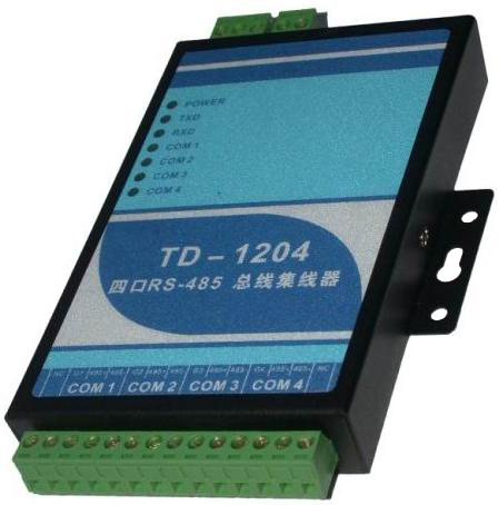 TD-1204是一款RS-485集線器(又稱RS-485總線分割集中器,RS-485HUB)。是我公司為了解決復(fù)雜電磁場環(huán)境下RS-485總線大系統(tǒng)中星型布線而專業(yè)設(shè)計(jì)。該RS485集線器采用雙向透明傳輸,RS485集線器它能夠把一路RS-485或一路RS-232總線分割為4路RS-485總線,或者把四路RS-485信號匯集到一路RS-485或一路RS-232總線上來。并且每個(gè)端口都獨(dú)立具有光隔、短路、開路保護(hù)功能。在系統(tǒng)發(fā)生故障的時(shí)候,內(nèi)置的控制器能夠及時(shí)的切斷有故障的端口。使RS485集線器保證每一端口都起到獨(dú)立工作,達(dá)到互不干擾的效果。每個(gè)端口可同時(shí)連接32個(gè)接點(diǎn),可延長1200米RS-485信號。是改變RS-485總線布線中單一結(jié)構(gòu)的最好選擇。