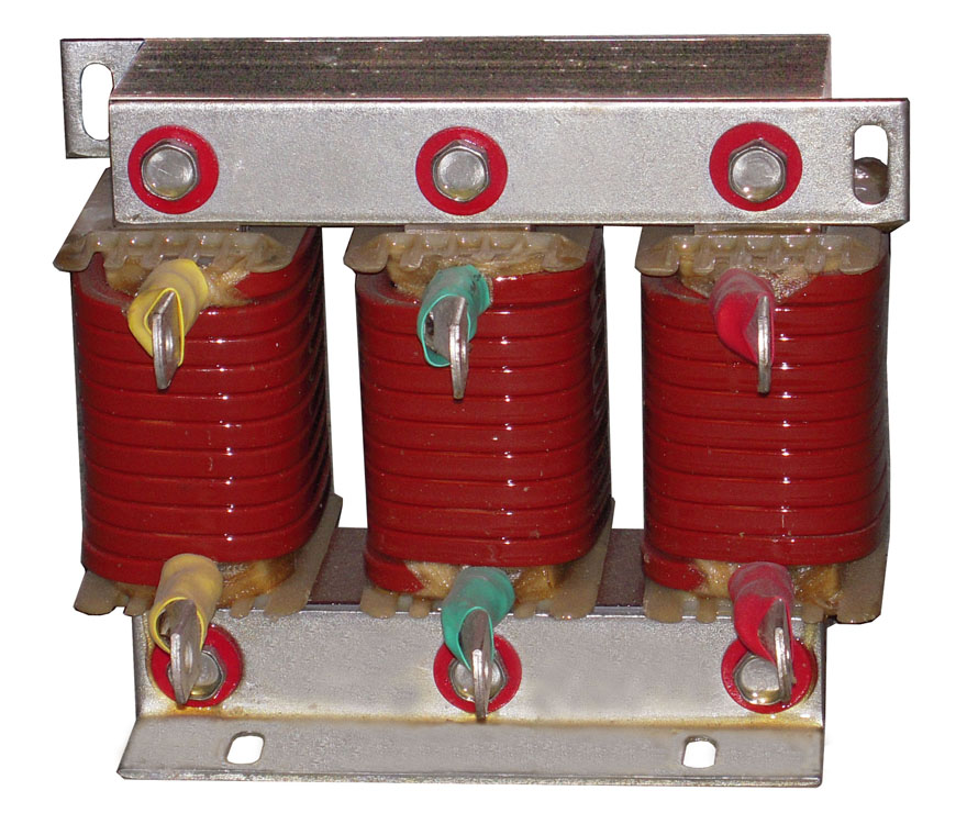 變頻調速用輸入電抗器:變頻器和調速器在使用過程中,經常會受到來自浪涌電流和浪涌電壓的沖擊,會嚴重損壞變頻器和調速器的性能和使用壽命,所以要在其前面加裝輸入電抗器,用以抑制浪涌電壓和浪涌電流,保護變頻器和調速器,延長其使用壽命和防止諧波干擾,同時由于變頻器和調速器是采用變頻的方式調速的,所以在調速的時候經常會產生高次諧波和產生波形畸變,會影響設備正常使用,為此,須在輸出端加裝一個輸出電抗器,用于濾出諧波電壓和諧波電流,改善電網質量,生產的輸入輸出系列電抗器,采用優質進口矽鋼片和優質銅線經先進的工藝精制而成,具有體積小、溫升低、無噪音等特點,適用于任何品牌變頻器.