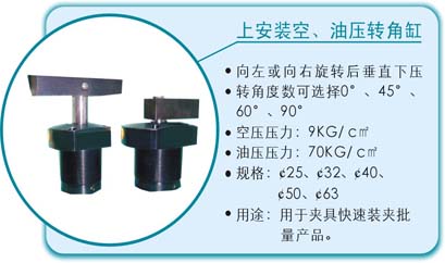 建議使用油壓轉角缸,請加裝流量控制閥,避免速度過快,以及轉角行程中,請勿夾持工件,避免損壞缸體及內部零件。