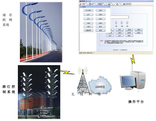 現代城市景觀照明控制管理系統中,要求在實現效果的同時,更加注重集中管理操作的便捷性及場所性,以及設備的安裝方便可靠。對于城市大面積的控制區域,用有線的方式來實現智能照明控制非常困難,首先改造項目中大面積的穿管布線對施工帶來很大的麻煩,區域內繁華的商業區,繁忙的交通要道等障礙,施工起來更加不便。再者,配電箱多安裝點分散,不宜用有線方式進行連接控制,同時本著節約成本的原則,采用無線方式來實現對整個區域道路燈光的智能化控制是最優化最合理的方式。