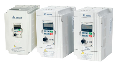 臺達M系列--高功能低噪音迷你型交流馬達驅動器   變頻器是運用近代電力電子與微電腦控制技術的一項新興產品,主要用在各種工業和民生的機械設備上。其用途在于借著它改變供電頻率,來控制電機轉速,進而達到提升機械自動化程度與節約能源的目的。   臺達M系列---高功能低噪音迷你型變頻器,具有體積小、低速力矩大、性能完善、使用方便等特點。    可廣泛應用于小型恒壓供水系統、產業機械、工業自動化控制等各種應用領域。 主要功能及特點: 體積小,使用方便; V/F及Sensorless向量控制; 1.0Hz,150%以上額定轉矩輸出; 內置PID功能; 計數器功能; 多段速及自動程序運轉; 簡易定位; 累計電機運行時間; 自動偵測(Autotunning)電機參數; 擺頻功能; 散熱風扇運行模式設定; 主,輔頻率控制; 睡眠功能; 節能運轉; RS485通訊接口,支持Modbus協議等
