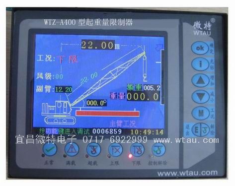 我公司WTZ負荷超載限制器就是針對各類吊車而設計,保證吊車及操作人員安全.該產品吸收了市場上現有負荷超載限制器眾多的優點,通過對吊車的起升結構的取力(重量傳感器)反饋到該儀表中進行采集,對比,讀取,判斷后顯示當前重量并對其進行相應工況指示,超過額定重量后快速切斷吊車吊鉤起升回路,使吊車不能起吊重物,從而達到保護吊車及操作人員安全的目的.WTZ負荷超載限制器具有性能好、可靠性高、裝置輕巧方便等特點.