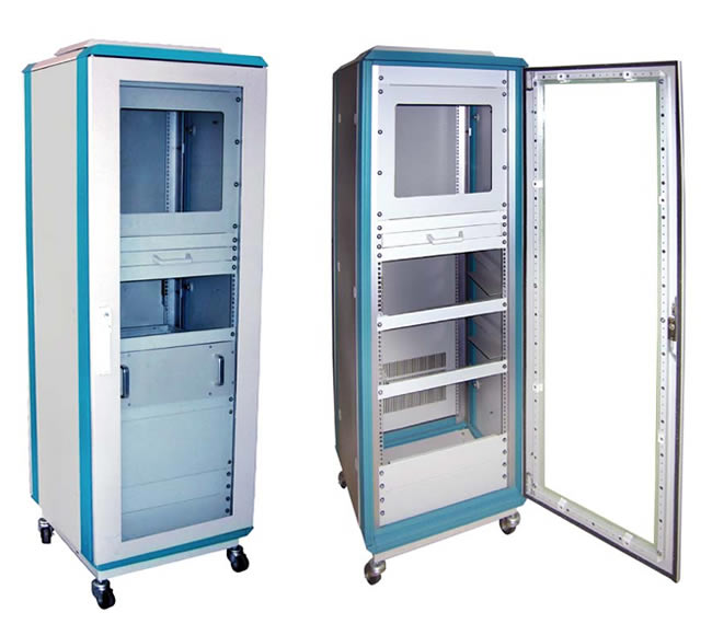 標(biāo)準(zhǔn)配置:1,一套帶門的箱體框架,2.一扇裝有玻璃的前門。3.一扇裝有通風(fēng)槽的后門。4.底輪四個。