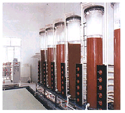 中水回用,一方面為城鎮(zhèn)供水開(kāi)辟了第二水源,可大幅度降低“上水”(自來(lái)水)的消耗量;另一方面在一定程度上解決了“下水”(污水)對(duì)水源的污染問(wèn)題,起到既經(jīng)濟(jì)又環(huán)保的作用。  目前中水主要用于以下兩方面:  1、生活雜用水,用于沖廁所、洗地、綠化、景觀等;  2、生產(chǎn)用水; 恒田公司在中水回用設(shè)備/工程方面,根據(jù)客戶(hù)對(duì)回用水的要求標(biāo)準(zhǔn)而采用不同的處理技術(shù),主要包括:物質(zhì)分離與生化處理、 RO反滲透、MBR生物反應(yīng)膜、離子交換、活性炭吸附等技術(shù); 離子交換法回收 離子交換法回收的目的是將溶解于水中的無(wú)機(jī)離子排除,原理說(shuō)明如下:陽(yáng)離子交換樹(shù)脂用氫離子(H+)來(lái)交換陽(yáng)離子;而陰離子交換樹(shù)脂則利用氫氧根離子(OH-)來(lái)交換陰離子,可以靠電阻(esistivity)或?qū)щ姸?conducivity)來(lái)判斷去離子功能是否有效。離子交換樹(shù)脂與各陰陽(yáng)離子的新和力強(qiáng)度如下:Ba2+>Pb2+>Sr2+>Ca2+>Ni2+>Cu2+>Co2+>Zn2+>Mg2+>Ag+>Cs+>K+>NH4+>Na+>H+>SO42->I->NO3->NO2->Cl->HCO3->OH->F-