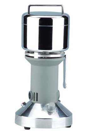 珍珠磨粉機中藥粉碎機 東莞隆鑫公司所生產的多功能小型粉碎機結構精密、體積小、重量輕、功效高、無粉塵、清潔衛生、操作簡便、造型美觀、既省電又安全等特點。粉碎槽及刀片采用不銹鋼制造,細度較高粉碎細度達50-300目,藥物無損耗,工作時無粉塵,不震動,藥材、植物、食物類均可粉碎,對中西藥物、珍珠、化工原料、食品原料、礦物、土壤、糧食、煤炭、實驗原料即能快速粉碎:阿膠、乳香、黃芪、三七、海馬、菟絲子、靈芝、田七、甘草、珍珠、大米、辣椒、胡椒、蓮子、黃豆、小麥、玉米、高粱、冰糖等等均能很好的粉碎。有極理想的粉碎效果,速度極快,能在3秒-2分鐘內完成粗碎及細粉,粉碎不同的藥物絕不會串味,是目前診所、門診部、特色門診、藥店、小型醫院、專科醫院、醫院藥房、家庭、研究所、實驗室、科研單位、大中專院校小劑量即時粉碎的首選機型,更適合田七、珍珠、辣椒、等加工商販隨身攜帶。廠價直銷、歡迎來電!0769-21894019 XS-02A 2兩手提式粉碎機 100g 50-300目 220(V) 650 (W) 25000轉  3.2(kg) 14×14×33cm