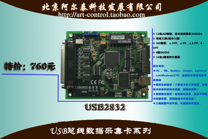 鄭州阿爾泰科技DAQUSB2832數據采集卡(32路100K 12位 8路DI、8路DO;3路16位計數器) 鄭州阿爾泰科技開發有限公司