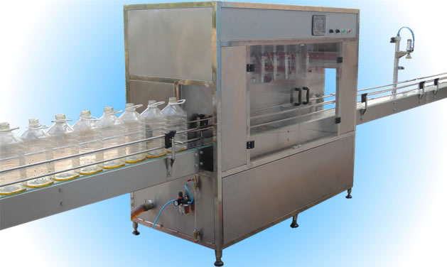 H包裝食用油機械,食用油視頻,粘液灌裝機 【名稱型號】全自動油類液體灌裝線(六頭) ZLDG-6型 【主要用途】廣泛用于各種桶裝液體(1-6升),如潤滑油、食用油等各種粘性、無粘性液體的定量灌裝。 【技術參數】jzzqh0807   灌裝機頭數:6頭   灌裝速度:每頭100-200(桶/小時)   灌裝精度:±≤0.3%FS   電源:220/380V   氣壓:0.5-1.0Mpa 【產品特點】  1.人機界面,直接設定灌裝量;  2.PLC程序控制,變頻器調速直線灌裝;  3.高精度容積式流量計,定量精確可靠;