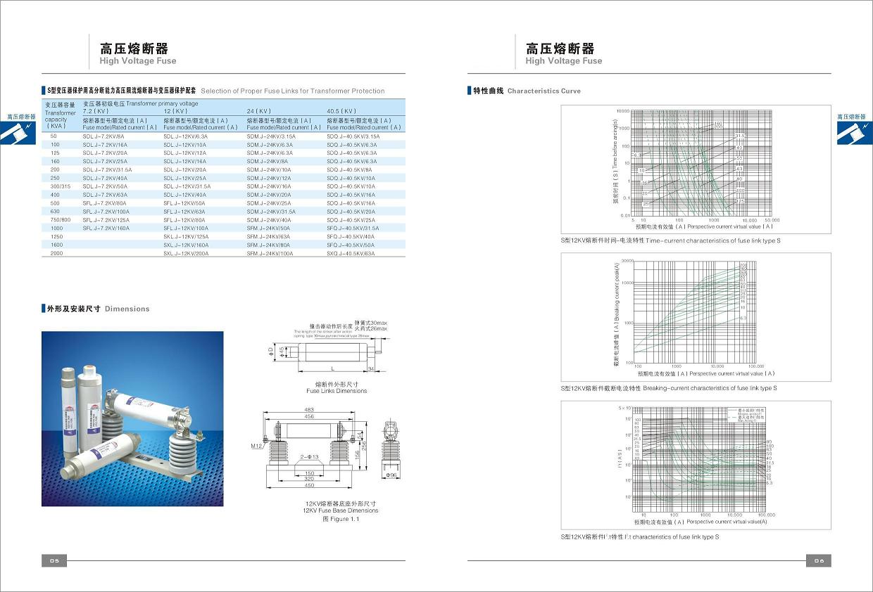 變壓器保護用高分段能力高壓限流熔斷器適用于交流50Hz,額定電壓3.6~40.5KV,額定電流至200A的電力系統中,符合國家GB15166.2標準和國際電工委IEC60282-1標準以及德國DIN標準。國內型號XRNT1-  國際型號SDLAJ-,SFLAJ-
