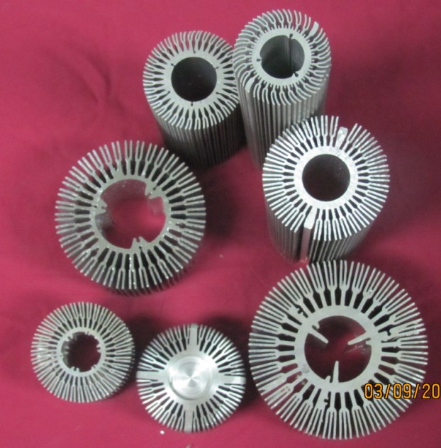 我司是專業(yè)制造鋁型材和鋁擠壓模具,可生產(chǎn)各類高難度,難擠壓,型狀復(fù)雜LED模具和鋁材,太陽花