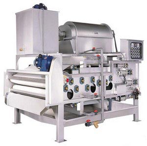 污泥脫水機消化吸收國外先進技術研制開發的一種脫水設備。脫水效率高,使用壽命長等特點,所采用濾帶和軸承均為高品質件,作為污水處理的配套設備,可將氣浮處理后的懸浮物及沉渣壓濾脫水,壓成泥餅,達到防治二次污染的目的;該機還可用于漿料濃縮、黑液的提取等工藝處理。