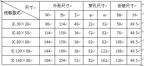 產(chǎn)品型號: K-30*20 K-80*50 K-80*80 K-120*60 K-120*80 K-160*80