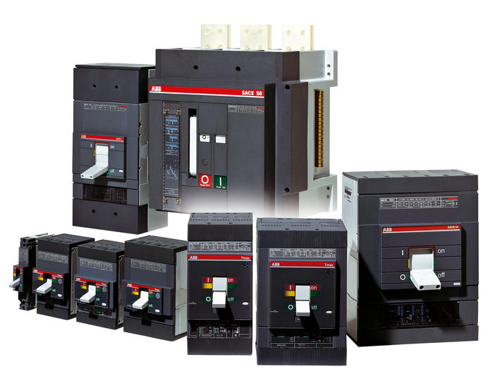 ABB塑殼斷路器具有8種型號:T1, T2, T3, T4, T5, T6, T7和S8。額定極限短路分斷能力(380/415V AC)從16kA到200kA。