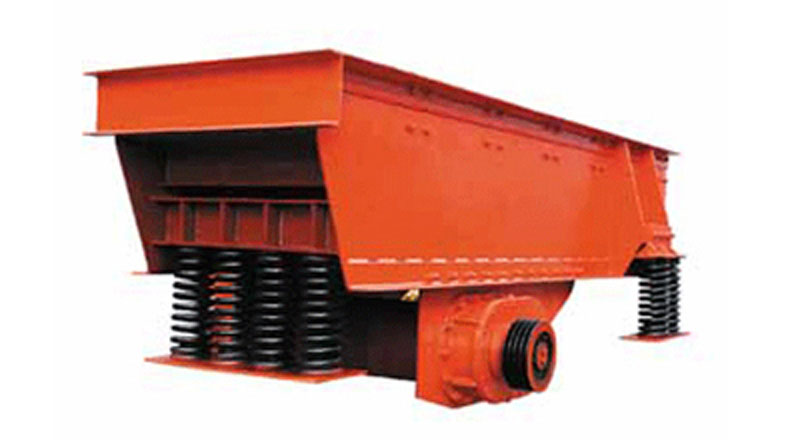 主要由振動機架、振動電動機、彈簧、支承座及耐磨襯板等組成。由于振動電動機的啟動,使機架在支承彈簧上作強制振動,物料則以此振動為動力,在料槽上作滑動及拋擲運動,從而使物料前移而達到給料目的。