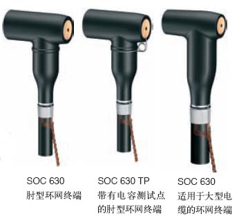 SOC 630 6-24kV冷套式屏蔽型可分離環網連接終端適用于6~24kV銅或鋁導體,交聯聚乙烯絕緣, 單芯或三芯電纜與設備之間的連接。