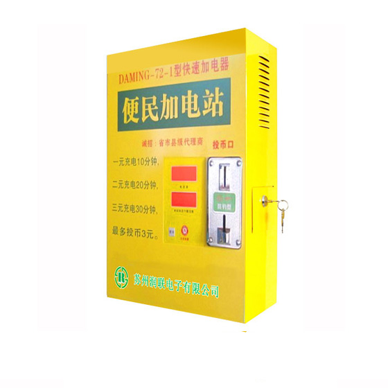 二、設備功能全智能化,操作簡單,語音提示,無需專人值守適用于 24、36V、48V、60V、72V電動車電池,電池快充,自動電池電壓識別.投幣1元,充電10分鐘,到時自停,可以行使5-10公里,電池可以待機10-24個小時,液晶屏顯示各參數,錢幣自動識別計時收費,每次充電最多投幣3次充電30分.投幣枚數:1-3元可以調整,時間10-30分鐘可以設定。充電過程中:語音每分鐘提示一次,正在充電;充電過程中,接頭線脫落:語音提示輸出線沒有接入,請接入電源對電動車電池電壓:能自動識別目前市場上24-72伏電動車,以及電池,進行自動充電。 能自動識別電動車充電站極性,自動識別正負極,進行自動充電。自動轉入智能充電:充電過程中,自動檢測電池電壓,根據電壓情況自動調節充電電流,從而實現智能充電。具有防錯接、防反接、防漏電、防雷擊等多重保護功能在充電的同時,對電池有修復和維護的作用 .可安裝在墻壁及各種桿柱上,設備后面或側面有固定設備的附件 .輸出端接電池的插頭有多種,適用常見的任何電動車電池的接入充電。 外觀新穎別致、色彩醒目富視角沖擊力,烤漆光滑平整。