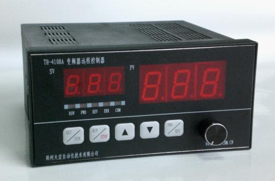這樣就可將變頻器安裝在電動機附近,通過屏蔽通訊線接到遠端操作室內儀表盤上的變頻器遠程控制器上,在操作室內就能觀察和操作變頻器的運行狀態。另外,變頻器遠程控制器還可接外置操作按鈕,有手動/自動切換及監聽等功能,可接入計算機控制系統,便于工程使用。