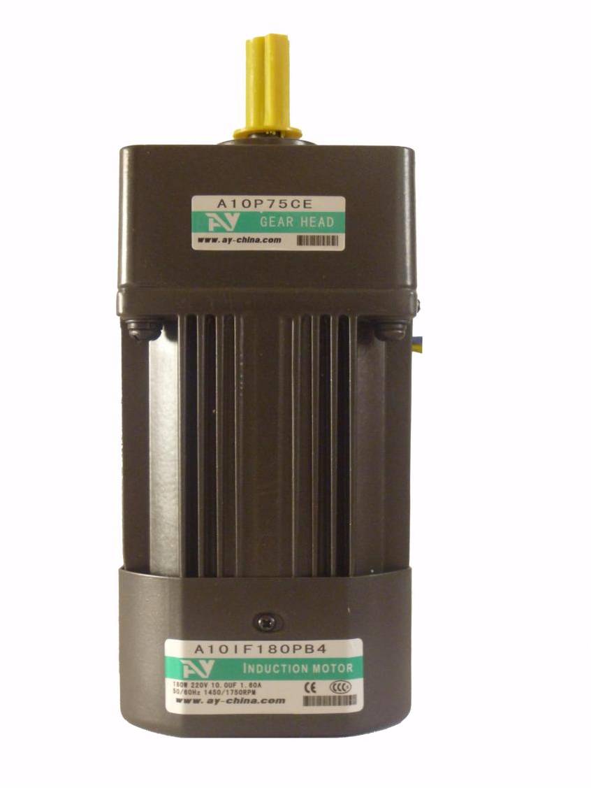 Korea AY motor (A) series specification complete power 6 W-200 W, ratio 1:3/1:18 00, our products mainly used in all kinds of low speed running mechanical, handling machinery and packaging machinery, food machinery, printing machinery, mechanical transmission, pharmaceutical machinery, advertising equipment, electronic equipment, sewage treatment equipment, industrial and mining equipment, etc. The products have passed China compulsory product certification (3 C authentication), the European Union CE, ISO9001:2000 quality system authentication.