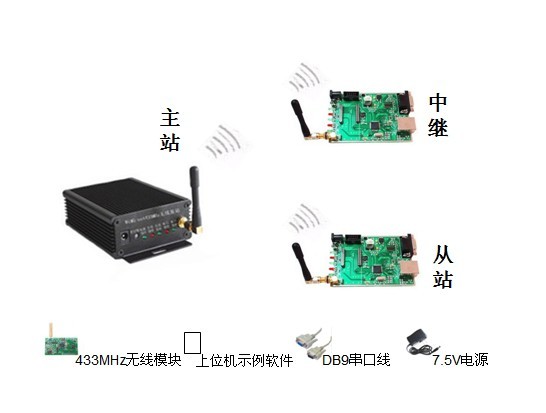 1. 一個無線模塊(主站模塊)配一個無線評估底板、一個無線模塊(中繼模塊)配一個無線評估底板、一個無線模塊(從站模塊)配一個無線評估底板
