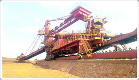 第1章 系統(tǒng)簡介 1.1 現(xiàn)場概述 斗輪堆取料機又稱懸臂式堆取料機,是散貨料場專用堆取設(shè)備。它是堆取料合一的機械,即是一種挖取和堆存煤炭、礦石、砂石等松散物料的高效率機械。它不僅適用于電廠,而且在碼頭、港口也很適用,大多數(shù)的轉(zhuǎn)運煤及松散物料的碼頭、港口都采用斗輪堆取料機。斗輪堆取料機的采用,大大縮短了堆取時間,提高了工作效率,減輕了工人勞動強度。國內(nèi)最早設(shè)計制造的企業(yè)有:大連重工(原大連工礦車輛廠)、哈爾濱重型機器廠、北京起重運輸機械研究所等單位。 斗輪堆取料機類設(shè)備包括堆取料機,取料機,堆料機,混勻取料機,混勻堆料機,門式堆取料機等。使用最多的是堆取料機,其原因是此類設(shè)備功能較齊全,可滿足大多數(shù)條件下的需要。上述各種設(shè)備的基本功能是向料場堆料,或從料場取料。其中堆取料機具有堆取功能,取料機、堆料機只有取料或堆料功能,混勻取料機與混勻堆料機除具有取料與堆料功能外還具有均化功能,以滿足用戶對物料均化的要求。 混勻取料機與混勻堆料機顧名思義,既有正常的堆料與取料功能,也有均化功能,主要用于鋼鐵企業(yè),水泥行業(yè),電廠的原料進(jìn)行均化處理。如燒結(jié)廠鐵礦石原料的均化,水泥廠的石灰石均化,發(fā)電廠的煤炭均化等。其重要意義在于經(jīng)過均化后的原料的化學(xué)成份相對穩(wěn)定,煤炭灰份與燃燒值也相對穩(wěn)定,可使這些行業(yè)在產(chǎn)品質(zhì)量控制方面與產(chǎn)品質(zhì)量方面有較大提高,同時提高了經(jīng)濟效益。并降低了能源消耗。混勻取料機通常為橋式或門式結(jié)構(gòu)。混勻堆料機通常是搖臂式結(jié)構(gòu)。在具體工作時與普通堆取料機的區(qū)別在于混勻堆料機是連續(xù)走行堆料,堆料方式又可分為人字形布料與菱形布料。當(dāng)堆料作業(yè)結(jié)束后再進(jìn)行混勻取料。混勻取料機取料時為全斷面取料,既同時取到整個斷面的物料。物料是由料耙耙下來,再由斗輪取到機上皮帶機,由機上皮帶機送到地面皮帶機。在實際取料過程中大車步進(jìn)運行一個單程,然后堆取料機運行一個單程。如此反復(fù)運行取料。 為提高均化作業(yè)的效率,設(shè)備應(yīng)具備尋堆認(rèn)址、定位, 自動確定各層料堆起點、終點及位置跟蹤、終點記憶、料流對中心、電纜保護、整機自動堆取料,從而實現(xiàn)流暢和高效的堆取料自動作業(yè)。同時中控室能夠?qū)ψ鳂I(yè)過程進(jìn)行監(jiān)視。所以有必要對堆取料機位置進(jìn)行連續(xù)跟蹤。