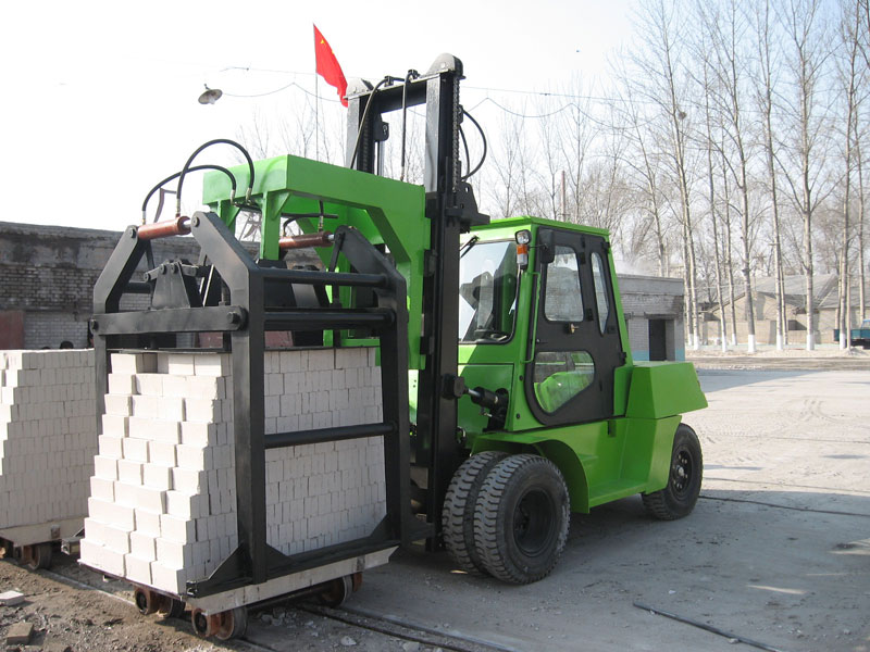 磚用裝卸機能夠一次性搬運一車蒸壓灰砂磚,自由在場地上行走,把磚放到理想的位置,與人工相比不僅提高了搬運效率、減少了破損率。同時,節省勞動力。