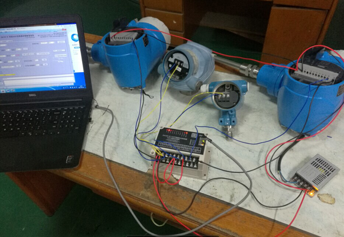 SM100-W 同時(shí)接流量計(jì),及液位計(jì),及壓力等 HART智能儀表通訊測(cè)試 1.接RS485接口實(shí)物圖如下: