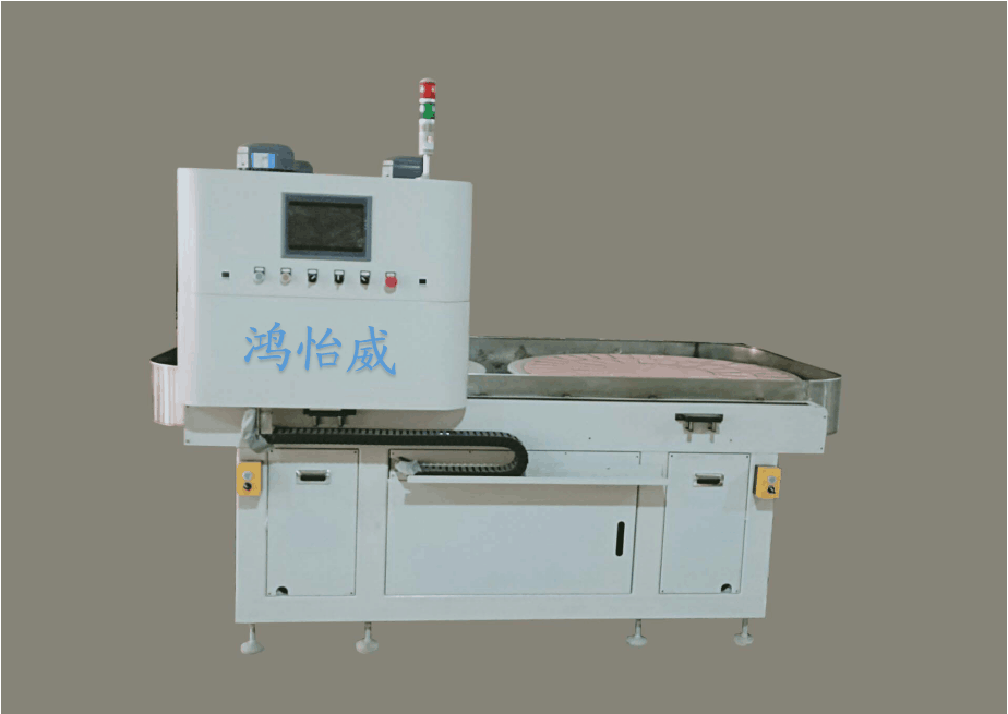 技 術 規 格 書 名 稱: HYW-1200A掃光機規格書 型 號: HYW-1200A L * W * H : 約2425mm(L)×1800mm(W)×2100mm(H) 工作臺高度: 950MM 用 途: 主要應用于手機曲面(2.5D,3D)蓋板玻璃、平板電腦曲面蓋板玻璃、車載玻璃,鋼化玻璃保護膜等玻璃產品的掃光。 一、設備概述 通過真空將玻璃吸附在左下轉盤上,橫梁整體向左平移到固定位置后,上轉盤整體下降到固定位置,下轉盤與上轉盤以相反方向同時旋轉,此時,右下轉盤同時可以取、放玻璃,左下轉盤達到設定時間后,上轉盤、左下轉盤同時停止,上轉盤整體上升到固定位置,橫梁整體向右平移到固定位置后,上轉盤整體下降到固定位置,右下轉盤與上轉盤以相反的方向同時旋轉。如此周而復始的循環。 二、規格參數 下轉盤 1)下轉盤直徑 1120mm 2)下轉盤材料 鑄鋁盤(真空氣道) 3)下轉盤數量 2個 4) 下轉盤調速 雙變頻調速(點動無抖動) 上轉盤 1)上轉盤直徑 490mm 2)上轉盤數量 4個 3)上轉盤材料 PVC(減輕轉動負載) 4) 上轉盤調速 變頻調速 生產效率 掃R面時速度 (蓋板) 300-400片左右/小時(4.7-5.5寸) 工件定位 1)定位方式 真空吸附 控制系統 PLC+人機界面+變頻器控制 動力配置 1)電源 3相 AC 380V±20 V 2)總裝機功率 18kW 3)工作實際功率 10KW 4)頻率 50HZ/60HZ 真空系統 1)自動真空排水系統 (用戶廠房提供) 1)氣源 正壓≥0.6MPa,外徑Φ8氣管 負壓≥-0.8MPa,4分網管 3)環境溫度 25℃±5℃ 三、售后服務 1.保修時間:機器驗收完成后正常使用情況下一年內保修。消耗品與附屬品不屬于一年保證期范圍內,水泵,閥門工作環境惡劣,不保。 E-mail:szhbglass@163.com 聯系電話:0769-8128 9480 / 13823360542梁先生 公司地址:東莞市清溪鎮謝坑村龍成二街偉德工業園A棟一樓103號 我司官網:http://www.hbglass.cn http://www.szchumoping.com http://www.szhbglass.com