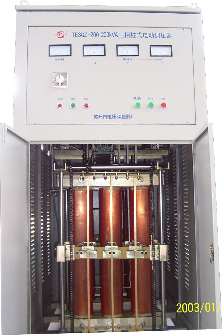 柱式電動調壓器為大型接觸式電動調壓器,是感應式調壓器的換用產品。外觀、重量、體積、效率、波形、操作、按裝維護都優于相同功率的感應調壓器。適用于工礦電力、醫院、國防、科研等部門作連續可調型的試驗電源。