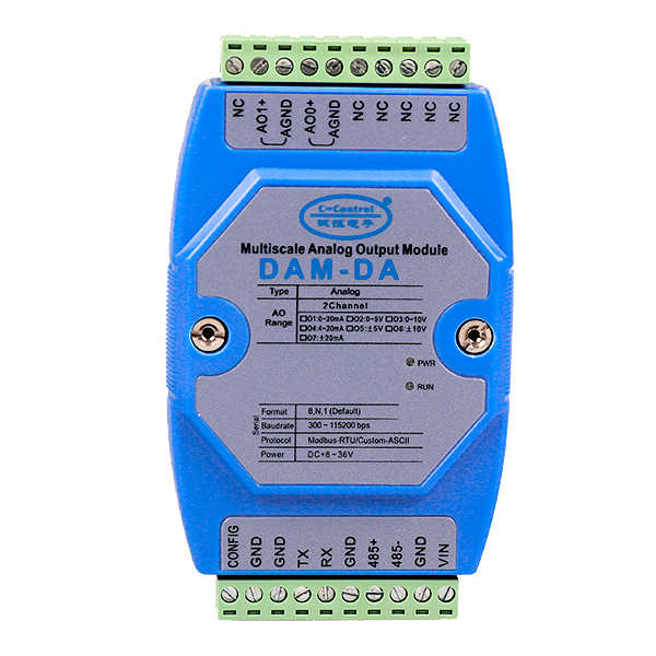 DAM-DA 簡介: DAM-DA模塊,通訊方式采用Custom-ASCII碼通訊協議或MODBUS-RTU通訊協議,其指令集兼容于ADAM模塊,通信速率與通信地址等參數可由用戶設置。產品針對工業應用設計:通過DC-DC變換,實現測量電路和主控電路電源隔離;同時控制單元與信號采集單元采用高性能光電隔離技術實現電氣隔離,有效保證系統可靠及安全。 參數: 嵌入式實時操作系統 模擬量輸出:2 路 DA 轉換分辨率:12 位 DA 輸出精度:±0.2% 模擬輸出范圍:+20mA,+5V,+10V 串口支持: RS485 / RS232 寬供電范圍:DC +8~+36V 地址/波特率/量程可由用戶配置 支持 ASCII / MODBUS-RTU 協議 ±15KV ESD 保護 隔離耐壓:DC 2500V 工作溫度范圍:-40℃~85℃ 工業級防火V0塑料外殼保障產品應用各類環境安全 標準 DIN35 導軌安裝 同系列其他型號: DAM-DA 模擬量 2AO RS485和RS232 DAM-DA04 模擬量 4AO RS485和RS232 DAM-DA08 模擬量 8AO RS485或RS232 RS232連接 DAM系統模塊RS232接口為標準RS232接口,符合相關規范,可以直接與電腦或其它標準RS232接口連接,其連接方式為交叉連接法,即模塊TX與電腦RS232的RX連接,模塊RX與電腦RS232的TX連接,模塊GND與電腦RS232的SGND連接。 ASCII通訊協議: DAM模塊支持Custom-ASCII協議(自定義的ASCII協議),用戶可以通過簡單的ASCII命令方便的讀取測量數據和配置模塊參數,比如地址(0x01~0xFF)、波特率(300bps、600bps、1200bps、2400bps、4800bps、9600bps、19200bps、38400bps、57600bps、115200bps)、校驗和狀態、開啟或關閉通道等。在條件允許的情況下,用戶還可以通過ASCII命令對模塊進行現場校準。其指令集兼容于DAM模塊。詳細的ASCII命令說明請參考DAM系列模塊用戶指令參考手冊。 關于誠控電子品牌介紹及售后保障: 誠控電子是國內知名的工業互聯網生態系統領導企業,專注于工業物聯網前端信息傳感、數據采集、數據轉換及傳輸設備的研發、生產及銷售。公司緊跟工業4.0、物聯網發展步伐,以用戶需求和前沿技術驅動創新,推動行業進步,自主研發的產品包括多種總線數據采集模塊、分布式采集模塊、無線通訊數傳采集模塊、工控機、傳感器、無風扇工業電腦、工業平板電腦等。企業通過了國家質量體系,CE歐盟質量體系,產品被廣泛應用于環境、電力、通訊、航天、軍工等領域。更多型號選型請登錄誠控電子。 本產品自售出之日起提供三年質保,7x24小時技術服務,凡用戶在遵守貯存、運輸及使用要求的條件下產品損壞,或產品質量低于技術指標的,免費返廠維修。因違反操作規定和要求而造成產品損壞的,需交納器件費用和維修費。