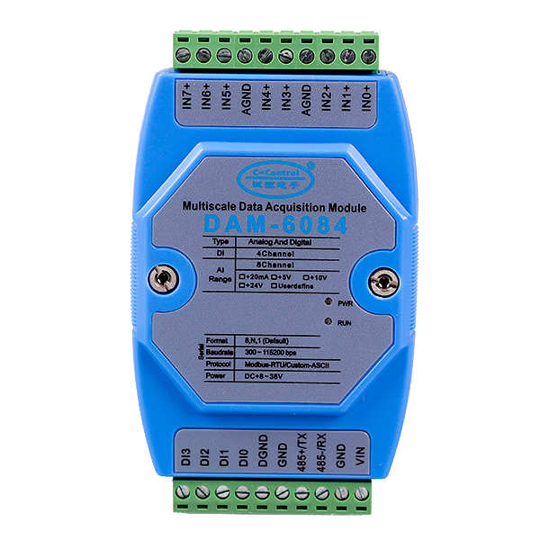 DAM-6160模擬輸入為單端輸入,模塊所有模擬地(AGND)都連接在一起;AGND即為模塊所有模擬信號輸入地,為了提高模塊檢測精度,請盡量就近接地。 電壓信號與電流信號可以直接接入模塊檢測,采集電流需要注意的是在定貨時需告知模塊用于采集電流信號,這樣模塊在出廠時會在模塊內部放置高精度電流檢測電阻且出廠時用標準電流信號校準。 DMA-6160配置有1路RS232與1路RS485,RS232可以直接與電腦連接,RS485可以單個與PLC或其它主機連接,也可以多個模塊組網后與PLC或其它主機連接。 MODBUS-RTU協議 Modbus協議是一種已廣泛應用于當今工業控制領域的通用通訊協議。通過此協議,控制器相互之間、或控制器經由網絡(如以太網)可以和其它設備之間進行通信。DAM-6160模塊支持工業標準MODBUS-RTU協議,模塊通過ASCII命令配置為MODBUS -RTU協議后,可以工作于MODBUS從站狀態。可以實現與多種品牌的PLC、RTU或計算機進行通訊。 關于誠控電子品牌介紹: 誠控電子,是國內知名的工業互聯網生態系統領導企業,專注于工業物聯網前端信息傳感、數據采集、數據轉換及傳輸設備的研發、生產及銷售。公司緊跟工業4.0、物聯網發展步伐,以用戶需求和前沿技術驅動創新,推動行業進步,自主研發的產品包括多種總線數據采集模塊、分布式采集模塊、無線通訊數傳采集模塊、工控機、傳感器、無風扇工業電腦、工業平板電腦等。企業通過了國家質量體系,CE歐盟質量體系,產品被廣泛應用于環境、電力、通訊、航天、軍工等領域。更多型號選型請登錄誠控電子。 售后保障: 本產品自售出之日起提供兩年質保,7x24小時技術服務,凡用戶在遵守貯存、運輸及使用要求的條件下產品損壞,或產品質量低于技術指標的,免費返廠維修。因違反操作規定和要求而造成產品損壞的,需交納器件費用和維修費。