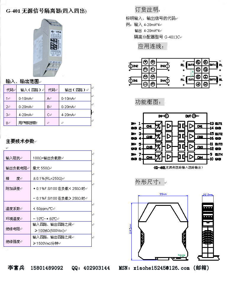 G-401無(wú)源四入四出信號(hào)隔離器 帕羅肯科技有限公司