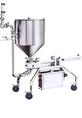 該機為半自動活塞式灌裝機,可灌裝顆粒漿狀流體物料。